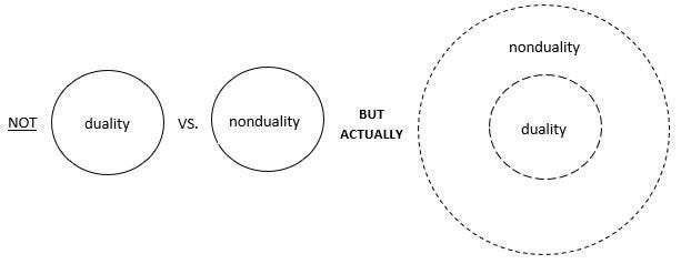It is not a matter of rejecting ‘duality’ and rationality in favor of ‘nonduality’. It’s more like relaxing one’s mind when complexity overwhelms us. We can then embrace our experience - for example - of Climate Catastrophe and Biodiversity Loss. Graphically it might look like this: